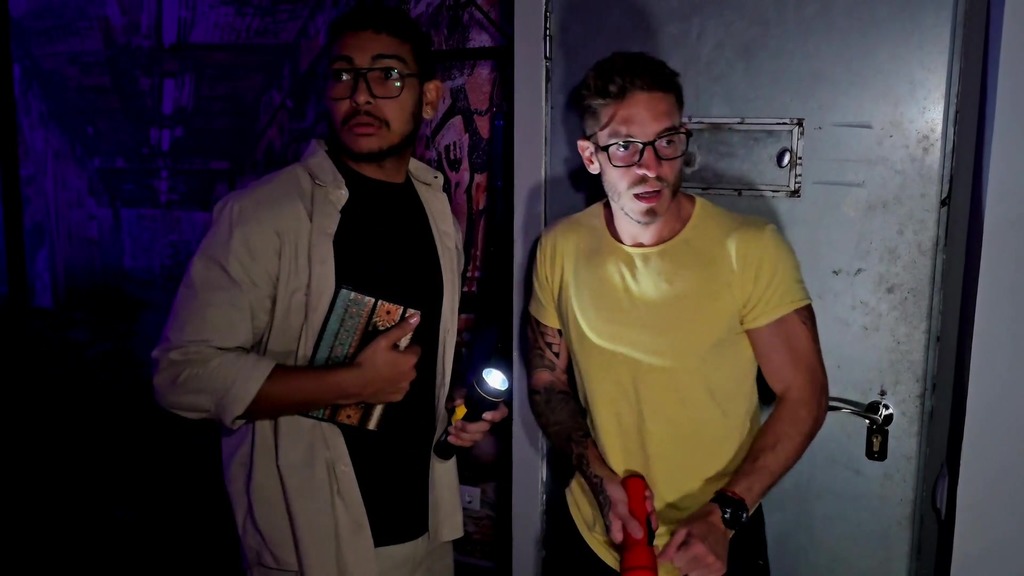 Two historians, ghost hunters, decided to go and do some research in an old house transformed into a SM room to rent. The two historians explore the place without knowing that ghosts are roaming and these poltergeists have decided to have fun with our two friends. Trapped in one of the rooms, a voice from beyond the grave announces to them that the only way for them to leave the place is to fuck each other. Our two historians comply and give themselves completely in a frenzied fuck to be able to free themselves. Deep throats, demonic blowjobs and infernal embraces, they will have to get the juice out to break the spell!