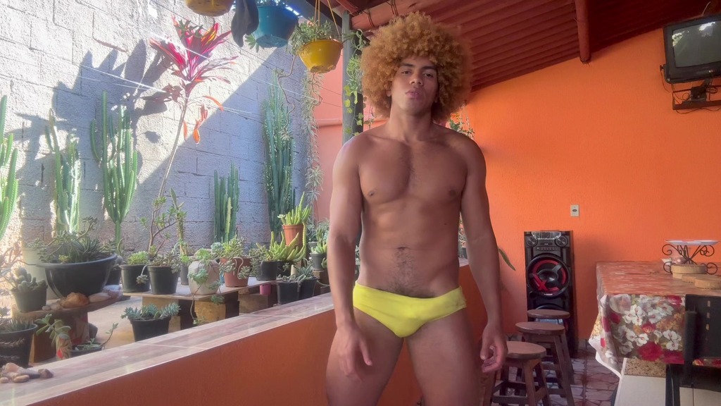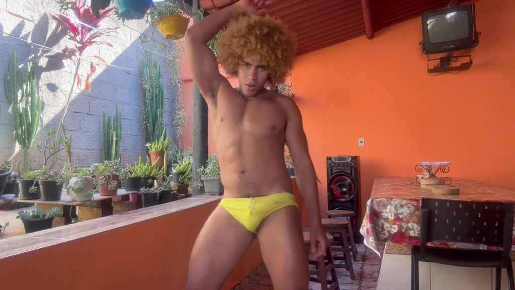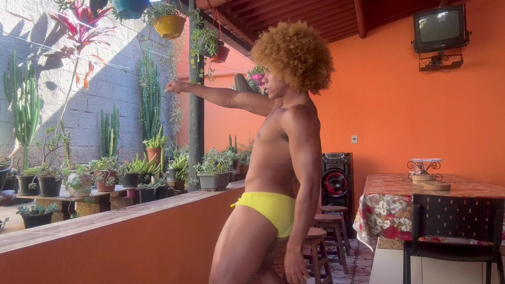 dancando de pau duro e batendo uma na varanda